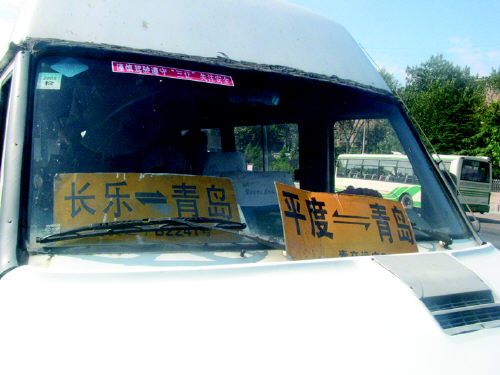 昨日10时左右,记者与两名身着便衣的交通稽查员来到重庆路上检查过往长途车辆。见到路边有“客人”,一辆开往平度的长途车停靠路边将记者和稽查员拉上了车。开出大约10分钟后,乘务员将“青岛至平度”的路线牌换成了“青岛至长乐(昌乐)”。看到长途车私自“换线营运”,稽查员立即亮明身份,将这辆长途车查处。