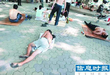 10月2日 海珠广场 凉席往地上一铺,或者只垫一张报纸,就四仰八叉赤身躺到地上,更有甚者,直接把这里当成了野餐场所