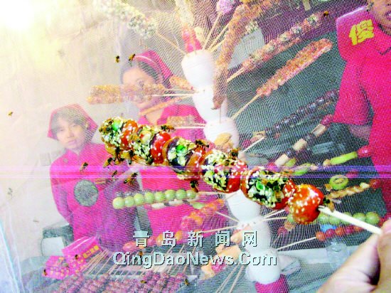市民曹先生在李村开了一家糖球店,近日突然增加了很多不拿工资的“店员”,这些“店员”一开门就来到店中,直到打烊才走。它们就是一群小蜜蜂。