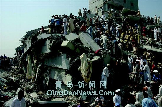 过里氏6级,48小时内仍可能再次发生余震    10月8日,救援人员在巴基斯坦首都伊斯兰堡一座在地震中倒塌的10层高楼房废墟上搜寻幸存者。巴基斯坦当天上午发生7.8级地震,导致至少上千人死亡,首都伊斯兰堡、拉瓦尔品第、拉合尔、白沙瓦、奎达等城市以及巴控克什米尔地区都有人员伤亡和财产损失。新华社数码传真     <<见2-3版 |