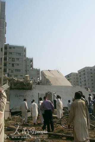巴基斯坦首都伊斯兰堡城区东部一座10余层高的公寓楼在8日上午发生的强烈地震中整体倒塌
