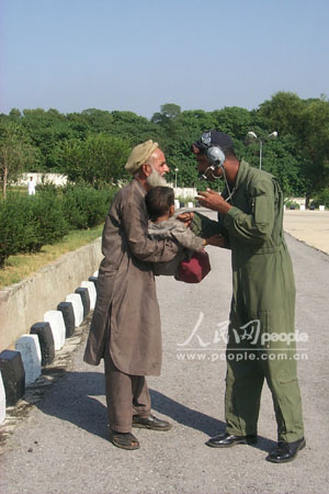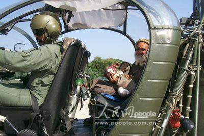 人民网伊斯兰堡10月9日电 记者陈一鸣报道:据来自巴基斯坦地震救援部门的消息,9日巴基斯坦各地的救援工作仍在紧张进行。巴基斯坦总理肖卡特·阿齐兹主持特别内阁会议后表示,巴基斯坦政府已经划拨50亿卢比(约8300万美元)的资金,以紧急救助强烈地震中受灾的民众。图为巴基斯坦军方使用直升飞机,转移在地震中被困的灾民。