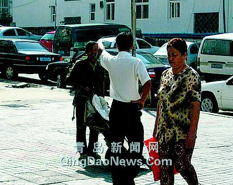 真是“冤家路窄”,三人没走多远,就与得意而归的“牵羊人”碰到一起(图5)。员工要求归还大桶,不料老汉死不承认。滕先生拿出相机回放。“牵羊人”没料到自己行踪已被相机摄下,惊讶之余,不得不返回收购站将大桶索回归还店员(图6)。