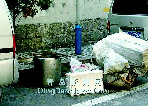 “他的举动很奇怪,一收废品老汉推着一辆独轮车从瑶瑶火锅店走出来,到振兴路时,将车推到一隐蔽处(图1),然后将一个很新的不锈钢大桶往编织袋里装,试了多次没装进去,于是又用一个大纸箱把不锈钢大桶隐藏好。”市民滕先生说,老汉的怪异举动引起他的注意。这样的桶,饭店根本就不可能当废品卖。即便是收购的废品,为什么还要费劲地将桶藏住呢?于是滕先生便用随身携带的相机抓拍下他的行动,并开始跟踪。