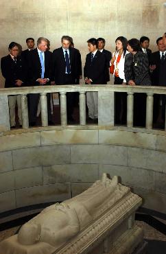 10月12日,国际奥委会主席罗格(前,左三)在中山陵瞻仰孙中山卧像。当日,罗格抵达江苏省南京市,他将出席10月12日晚在这里举