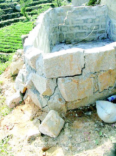 | 村民修的蓄水池也产生了裂缝。王哲摄 |