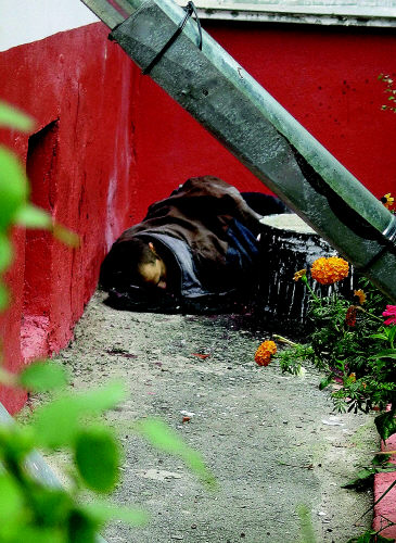 在街对面,躺着更多尸体,其中多数头部都有可怕的伤口。全副武装的警察对尸体又捅又踢,好像是在查看他们是否已经真的死了。从这点来看,这些都穿着跑鞋和运动衫的人应该是车臣武装人员。