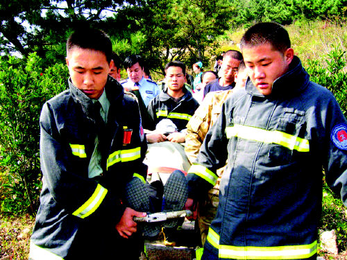 吸入氧气后,卢圣得的呼吸变得顺畅起来,也能站起来了。在民警的搀扶下,老人缓慢地走下台阶,回到木栈道上休息。因救护人员和民警的人力有限,无法将他抬下山。120急救人员又向119求助,随后赶来的消防官兵将老人固定在担架上,6名队员和民警轮番抬担架,将老人安全地送到山下的救护车上。老人随后被送到海军401医院,目前已没有生命危险。(记者