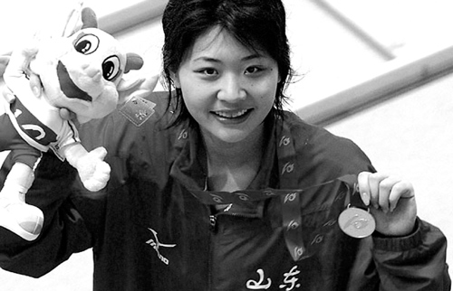 笑靥如花 10月15日,山东队选手高畅在领奖台上。当日,在十运会游泳决赛中,高畅夺得女子100米仰泳冠军。□记者 李勇 报道