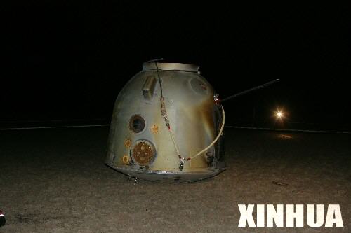 着陆后的神六返回舱