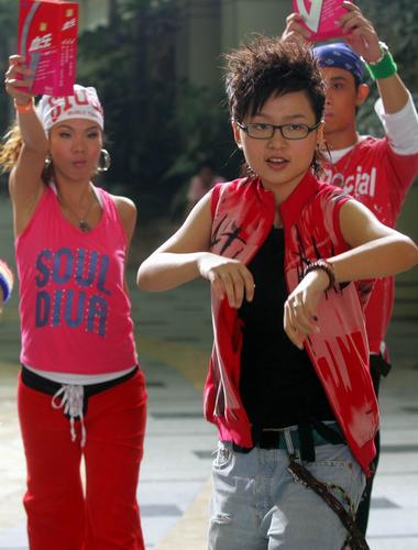 现场,周笔畅身着红色背心,及膝马靴,与舞群跳起街舞。第一次拍摄时,周笔畅因为不熟悉走位,舞步被忽然冲过来的摄像机打乱,一时不知所措,但很快就熟悉了动作和走位,倒是专业模特频频被导演叫停,周笔畅并不因此懊恼,还一个人合着音乐舞蹈,感觉很享受。