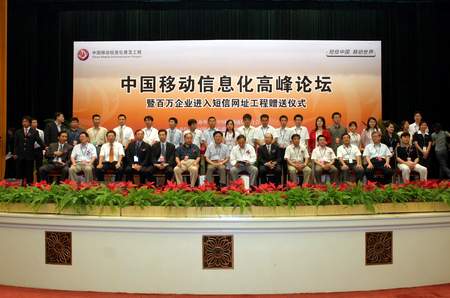 8月18日,由中国移动通信联合会主办的中国移动信息化高峰论坛暨百万企业短信网址工程赠送仪式在人民大会堂举行。