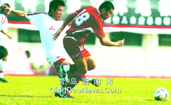 |  | | 山东队队员(白衣)在比赛中积极拼抢 |    早报体育专讯   昨天下午,有意雪藏部分主力的山东十运男足在十运会男足四分之一比赛中,轻松地以3:0战胜河北队,闯入