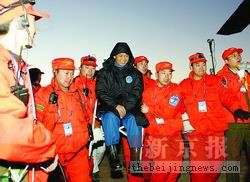 昨日凌晨,在内蒙古四子王旗,宇航员聂海胜被搜救人员送上飞往北京的专机。本报特派记者陈杰摄