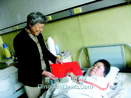 总会副会长亢清兰及总会工作人员到市第三人民医院看望了在那里住院的打工妹陈国英,并给她送去了5000元慰问金。    亢清兰表示,从报纸上看到陈国英为设警示牌被车撞伤的消息后,总会领导和工作人员被她的高尚品德所感动,一直关注着她的伤势和治疗情况,当得知陈国英缺少康复费用后,总会立即决定拿出5000元,作为她的生活和康复费用,并祝愿她早日康复。(顾琰琰)5000 |