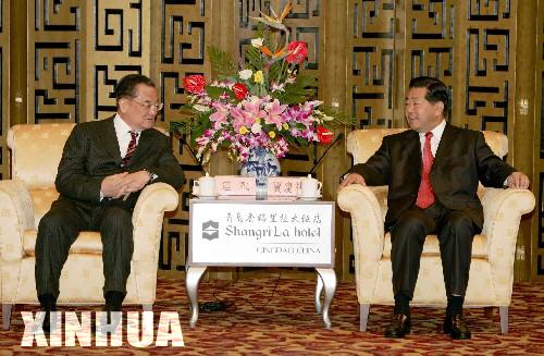 10月18日,中共中央政治局常委、全国政协主席贾庆林在青岛会见中国国民党荣誉主席连战。 新华社记者