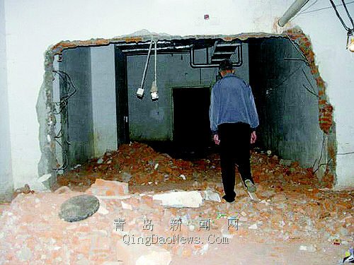 昨晨7时许,家住南京路98号2号楼五楼的孙先生突然听到楼下一声闷响,“像锤子砸在墙上的声音,且一声重似一声。”他心中一惊,“难道有人在砸楼下的墙?”他拔腿冲到负一层地下室。“我看见几个民工正拿着大铁锤砸墙。”孙先生忙问民工:“你们在干什么?”民工们回答:“砸墙。”孙先生急了,“这是承重墙,不能砸!”但他的抗议却很快被置之不理的铁锤声音淹没。“我们这栋楼28层高,住有二百多户人家,如果再这样下去,真要把整栋楼砸垮。”为了阻止墙面的破坏行为,居民找来该楼物业和开发商相关负责人,经过干涉,终于迫使民工暂停施工。