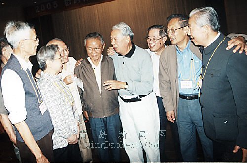 这些同窗共度的老同学,1950年毕业后,分配到祖国各地。如今,他们中年龄最大的85岁、平均年龄78岁。随着年龄的不断增长,同学们思念母校、渴望同学聚会的心情日趋迫切。    在青岛市老年网球协会主席施稼声(中)和青岛的几名老同学的筹办下,举办了这次聚会。同学们不顾年迈,从各地赶来。大家相互鼓励,期盼着到母校去参加同学聚会。李延春摄     |