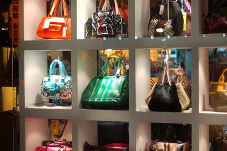 漂亮的时装包正在打折,店里挤满了“淘宝”的美女