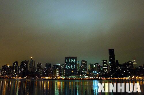 10月22日,位于美国纽约市曼哈顿的联合国总部大楼亮起“UN60”的字样,以纪念联合国成立60周年。该图案是由联合国总部大楼的200多个办公室灯光组成的。1945年10月24日,联合国