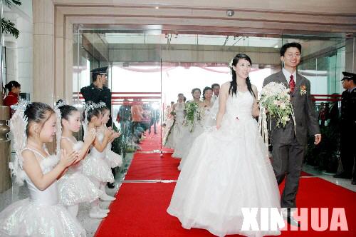 10月22日,70名新人迈入婚姻殿堂。当日,浙江省嘉兴市举行第四届江南水乡集体婚礼,70名新人同时迈入婚姻殿堂。 新华社发(冯海军 摄)