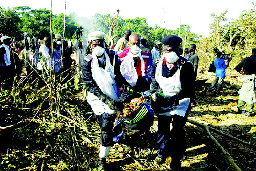 上午最新    尼日利亚客机坠毁最终伤亡确认117人全部遇难    10月23,在尼日利亚拉各斯国际机场西北约30公里的利萨村,救援人员在飞机坠毁现场展 开清理工作。当天,尼日利亚政府官员宣布,22日晚坠毁客机上的117名乘客和机组人员已经全部遇难。但目前还不能证实机上是否有中国人。新华社/法新    详见时事国际风云24版