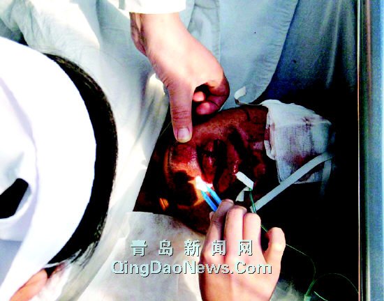 24日,胸科医院外科病房于德洋大夫告诉记者,30岁的胡勤仿从十余米高空坠落,由于脸部先着地,他的下唇部严重挫裂,颅底也有骨折,在重症监护室里治疗。35岁的雷天勤是坠楼3人中受伤最轻的一个,只是右肩部骨折,直接入住普通病房。