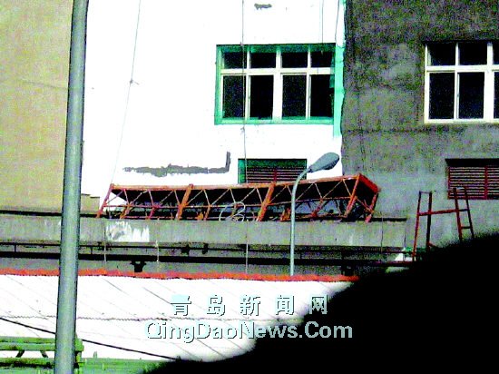 雷天军等3人就是站在这个铁架上坠楼的 |