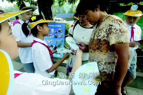 创城期间,市南区教体局共组织3000余名小学生免费向市民及游客发放对路人的不文明行为进行劝诫写有“文明随我行,共创文明城”的小扇子,宣讲创城知识,文明从我做起(记者