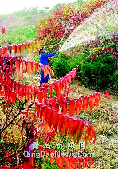 昨天下午,记者在辛家庄北山看到,刚栽种一二年的小红枫如今已出落得亭亭玉立,或深或浅的红叶在风中摇曳,别有一番意味。还有另外一种火炬树也红似火,秋日美景毕现。