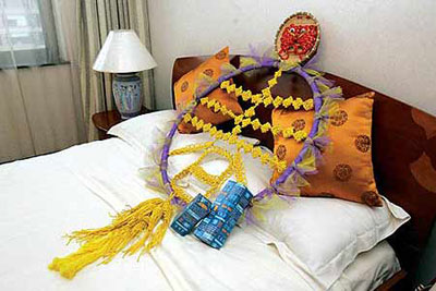 超女们在山城下榻的“闺房”是什么模样呢?记者费尽心思,在超女们抵达前把她们下榻房间的情况打探清楚了,并用承载着太多深情厚意的礼物把超女房间精心布置了一番,让超女们进门第一眼就能看到礼物,感受到山城粉丝的热情。
