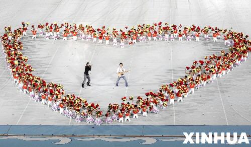 这是在东亚运动会开幕式上,澳门的SOLER歌唱组合在演唱大会会歌。