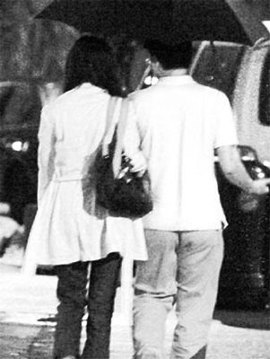 资料图片:李嘉欣与庞维仁在雨中漫步