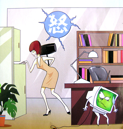 唐克至少仍清楚地记得那一天发生的事情。那天她准备在家查资料写稿子,上午她打开电脑上网收信,不久就发现所有的页面都很难打开,要很长时间才能看到。当时她并不知道这是电脑被网络病毒攻击。在等待的过程中,唐克感觉到自己的耐心一点点地消失,情绪越来越烦躁不安。“我开始拍打键盘,打鼠标,然后冲着屏幕喊叫,进而怒吼。”平时唐克是个性格比较温柔的女孩,很少和别人发生冲突,自己冲着电脑发了一顿脾气之后她想做点别的事情来缓解这种情绪,但是唐克说那天自己就像中了邪一样,好像电脑里的病毒传染到了他的身上,无论做什么,看书、看电视、做饭都心不在焉……