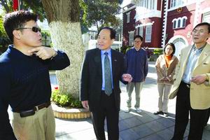 1月31日,在埃及首都开罗的中国大使馆内,中国驻埃及大使吴思科(左二)在出发前,就香港旅游团发生车祸事件布置工作。新华社记者金林鹏摄