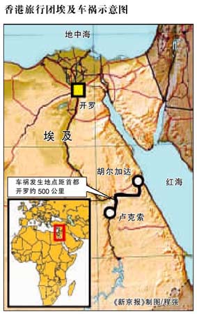 昨晚,中国驻埃及大使馆新闻发言人宫宇峰表示,事故发生于北京1月31日下午1时许,埃及当地时间早7点30分左右,地点位于埃及南部红海旅游城市胡尔加达到卢克索之间的公路上,距离首都开罗约500公里。
