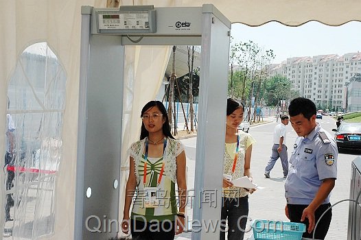 青岛新闻网8日10讯 随着2006青岛国际帆船赛的日益临近,为确保2006青岛国际帆船赛顺利举行,此次帆船赛的举办地青岛奥帆基地的安检系统也于今天全面启动。记者采访了解到,此次2006青岛国际帆船赛的安检保卫工作的标准将与机场安检保卫的标准一致。今天,在奥帆基地的四个出入口均设置了四道安检厅,每个安检厅都配置了与机场安检系统一样的X光机和两道安检门,通过人员需将随身金属物品、手机等通过X光机检查后,并安全通过带有警报系统的安检门后方可进入奥帆基地。