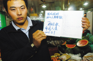 昨日上午,记者再次来到了四方实验小区益欣超市,妞妞父母卖水果的摊前。当时恰巧遇到一名买水果的大姐正向妞妞的父亲打听孩子的病情,“妞妞这几天情况怎么样,孩子状况好些了吗?”两人正说着,大姐从兜里掏出200元钱,匆忙塞到妞妞爸爸手里。“每天都有很多这样的好心人来买水果,他们给孩子捐钱后也不留姓名,就匆匆离开了。”妞妞的父亲张贵明告诉记者,许多人在买水果时,都会偷偷塞钱给他,少的十元八元,多的两千三千。张先生说,他的水果摊已经成了爱心“捐款箱”,仅昨日一天就收到捐款2000多元。