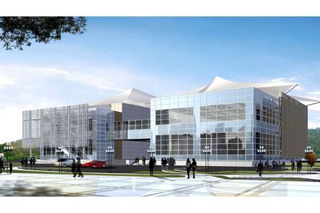 后勤保障中心位于赛区东部边缘,总建筑面积约5800㎡,地上2层, 地下1层。赛时功能包括后勤供应管理办公和赛场保洁维护办公两部分。赛后将会成为娱乐休闲场所。