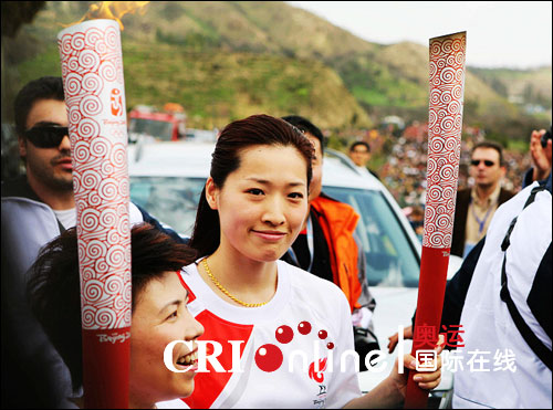 第二棒火炬手罗雪娟(摄影:国际在线记者 饶彬彬)