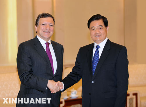 新华网北京4月25日电(记者钱彤)国家主席胡锦涛25日在人民大会堂会见欧盟委员会主席巴罗佐。