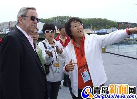 康斯坦丁二世仔细听取臧爱民对奥帆中心的介绍(青岛新闻网 任俊峰 摄)