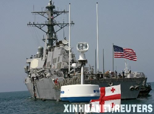 8月24日,载有约80吨救援物资的美国海军导弹驱逐舰“麦克福尔”号抵达格鲁吉亚黑海港口巴统。 新华社/路透