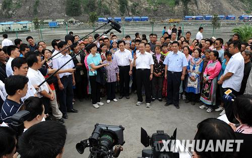 新华网成都9月2日电(记者 李斌)9月2日上午,在汶川大地震过去110多天、灾区大规模恢复重建工作即将展开之际,正在四川地震灾区考察的中共中央政治局常委、国务院总理、国务院抗震救灾总指挥部总指挥温家宝,在赴汶川大地震震中――汶川县映秀镇慰问受灾群众后,就近在居民安置点举行了一场别开生面的“记者招待会”,回答了记者的提问。