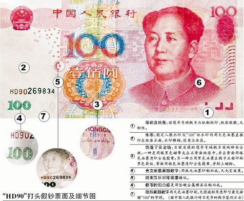 目前,人民银行发现的“HD90”编号的假币不存在“高仿真”的说法。媒体报道称“连银行、验钞机也无法识别”的说法是不确切的。只要掌握一定人民币防伪技能,就可分辨出真伪币。