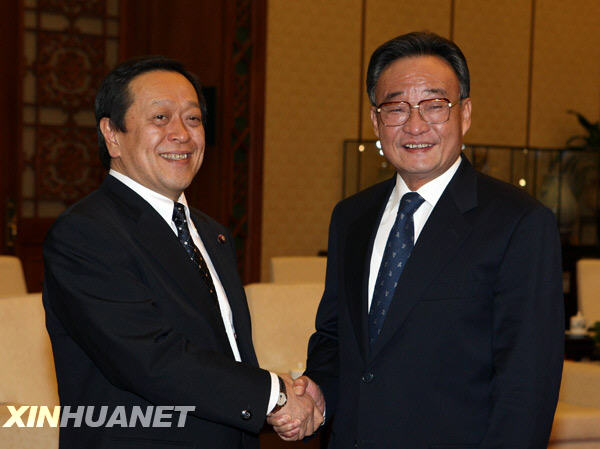 3月20日,全国人大常委会委员长吴邦国在北京人民大会堂会见日本防卫大臣浜田靖一。新华社记者姚大伟摄