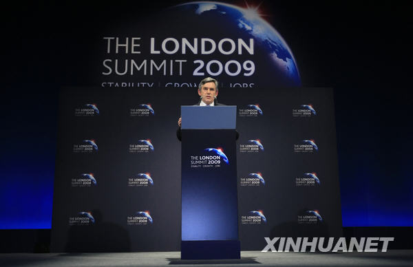 4月2日,英国首相布朗抵达二十国集团伦敦金融峰会闭幕新闻发布会现场。当天,二十国集团伦敦金融峰会落下帷幕。新华社记者张玉薇摄