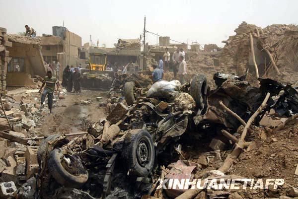 6月20日,伊拉克民众在北部城市基尔库克附近发生的汽车炸弹爆炸现场围观。伊拉克警方人士当日说,基尔库克的一座清真寺附近当日发生汽车炸弹爆炸袭击,造成至少35人死亡、160人受伤。新华社/法新