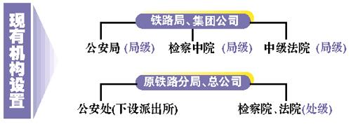 建国初期,考虑到铁路是国家大动脉、运输的跨区域性、社会治安等因素,模仿前苏联建制设置了铁路公检法系统。1982年,又自上而下建立了三级铁路运输法院和铁路运输检察院。铁路公检法的管辖范围是:铁路沿线的车站及沿线发生的案件,并同时对铁路所属的工厂、企业、专属的铁路居民生活区、铁路院校等发生的刑事、民事和经济纠纷有权管辖。地方省级检察院及法院对铁路检、法机关的领导和指导仅限于业务,而人事任免、劳保福利、财政经费均由铁路企业负担。铁路公检法实际上成了铁路企业的下属部门。铁路公安既有警察证(铁路印制),又有铁路职工工作证。
