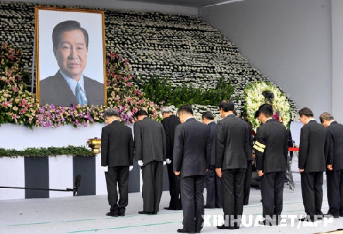 8月21日,由朝鲜劳动党中央书记金己男(前)率领的朝鲜吊唁团来到设在韩国国会议事堂正门前的已故前总统金大中的正式灵堂进行吊唁。这是自去年2月李明博政府上台以来朝鲜高级别官员首次前来韩国。根据计划,朝鲜吊唁团将于22日结束在韩国的日程返回朝鲜。新华社/韩国纽西斯通讯社